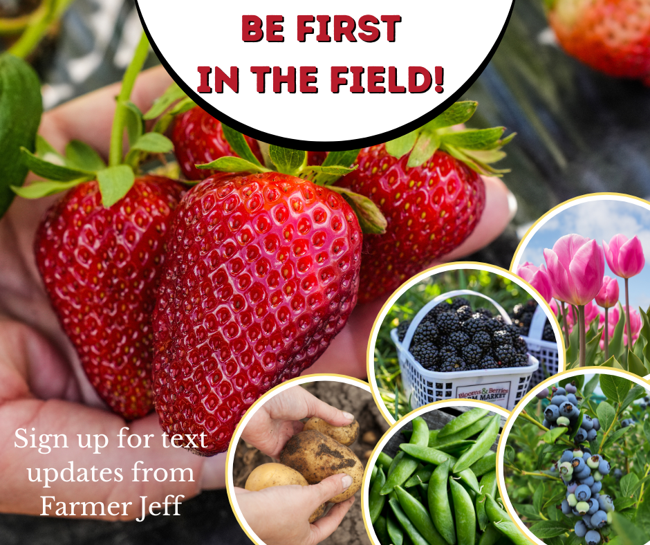Be the first to be notified by Farmer Jeff via text for updates on our U-pick Strawberries.